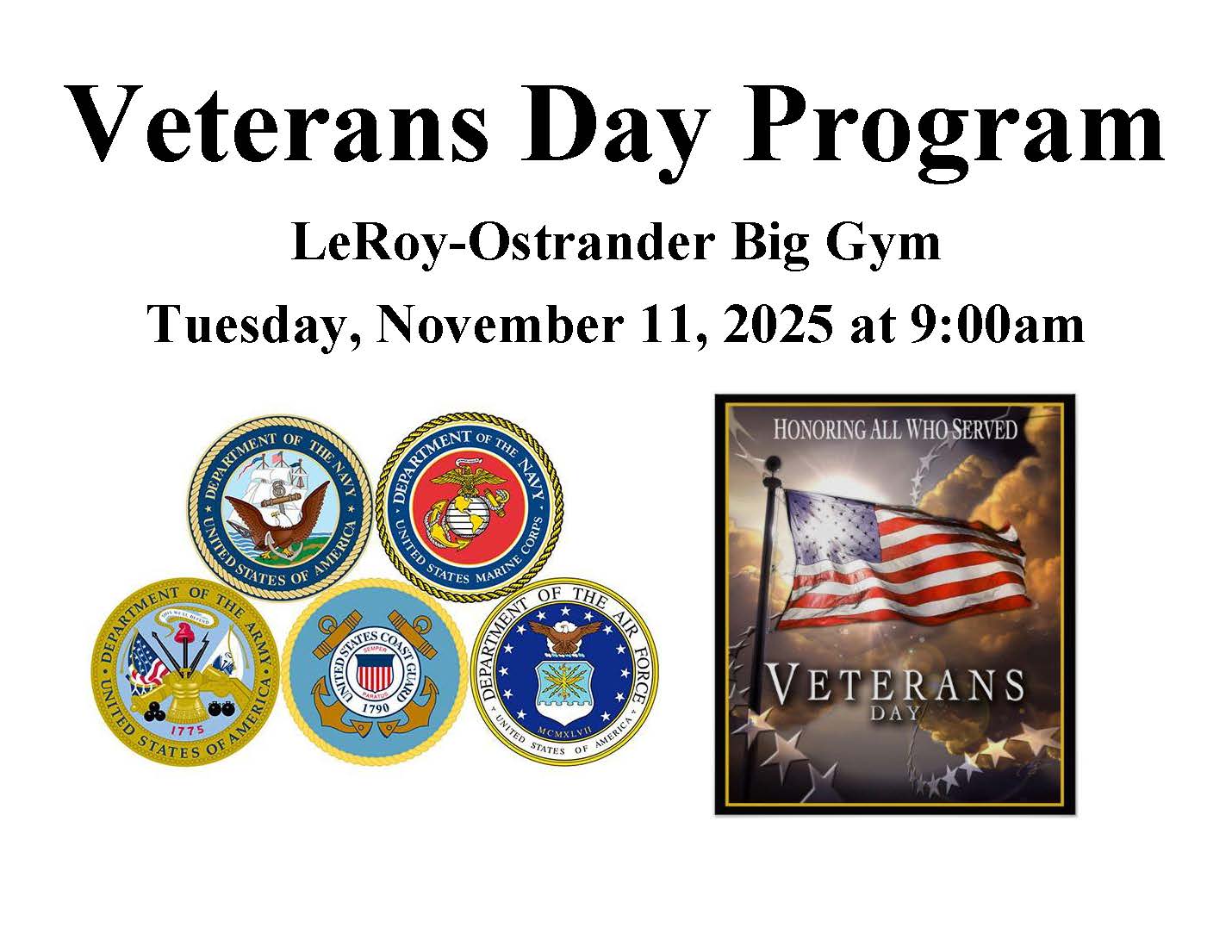 Veterans Day Program 11/11/25 at 9am